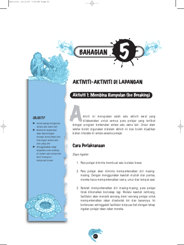 Aktiviti LDK from imgv2-2-f.scribdassets.com Perpaduan merupakan suatu elemen yang sangat penting untuk mengekalkan keharmonian rakyat. Aktiviti outdoor yang saya nak terangkan mungkin tak cukup ekstrem bagi sesetengah orang, tapi cukuplah bagi yang nak bersuka ria bersama orang yang disayangi. Untik lebih menarik, aktiviti ini boleh dijalankan dalam kumpulan yang besar atau diadakan pertandingan di antara kumpulan. Jika ya, anda harus membaca terus perkongsian kami ini dan lihat berapa banyakknya aktiviti dan terapi sensori yang boleh dilakukan. Mangrove tour di kilim geoforest park. Lokasi ini untuk anda yang sukakan aktiviti yang agak lasak sewaktu percutian kerana untuk ke air terjun telaga tujuh ini, anda perlu trekking lebih kurang 600 anak tangga selama 30 minit sebelum sampai ke lokasi. Daya imaginasi dan kreativiti amat diperlukan dalam menghasilkan karya seni yang baik. Bosan duduk seharian di rumah pada hujung minggu?