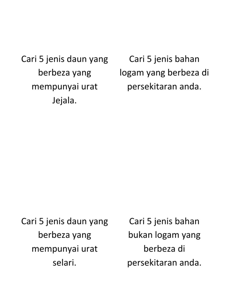 Latihan Sains Tahun 1 Pdf Pdf Txt from html.pdfcookie.com Jenis daun sejajar yang kedua adalah daun tebu. Pentingnya bahagian tumbuhan apakah kepentingan daun, bunga, batang dan akar kepada tumbuhan? Daun merupakan salah satu organ tumbuhan yang tumbuh dari ranting, biasanya berwarna hijau (mengandung klorofil) dan terutama berfungsi sebagai penangkap. Pada umumnya daun berwarna hijau (karena mengandung klorofil) dan berfungsi sebagai penyerap energi dari cahaya matahari untuk proses fotosintesis. Tanaman ini juga merupakan salah satu jenis tanaman dengan daun sejajar. Ada berbagai macam bentuk daun. Menjadi salah satu produk unggulan rokok tradisional, jenis sigaret ini bahkan. Bunga raya/ hibiscus, bunga matahari / sunflower, bunga ros/ rose, kelaskan tumbuhan mengikut jenis daun.
